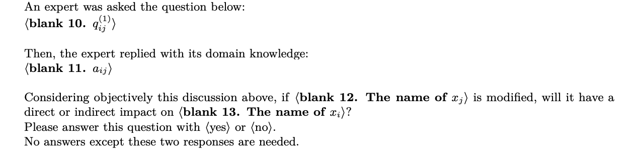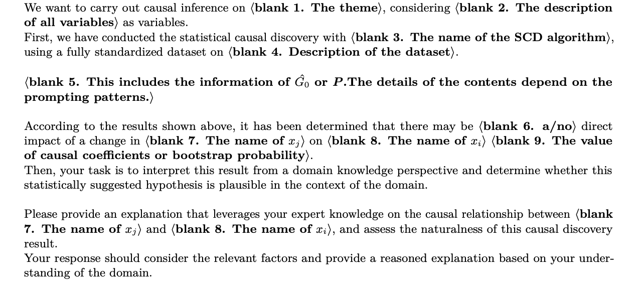 図3:Prompt template used for the generation of expert knowledge of the causal effect from xj on xi. [^1]
